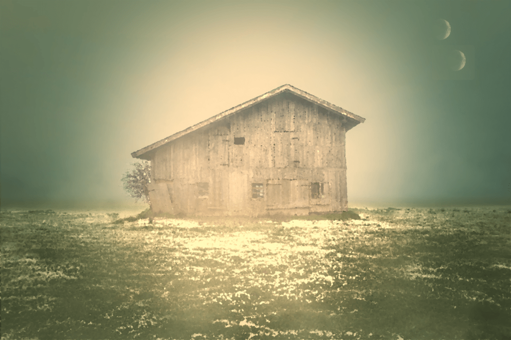 He sat up stiffly in bed. Seconds passed while he interpreted his strange surroundings. He wasn’t in his own home, of course. This was out in the country. It was colder than it should be and there was green at the window.