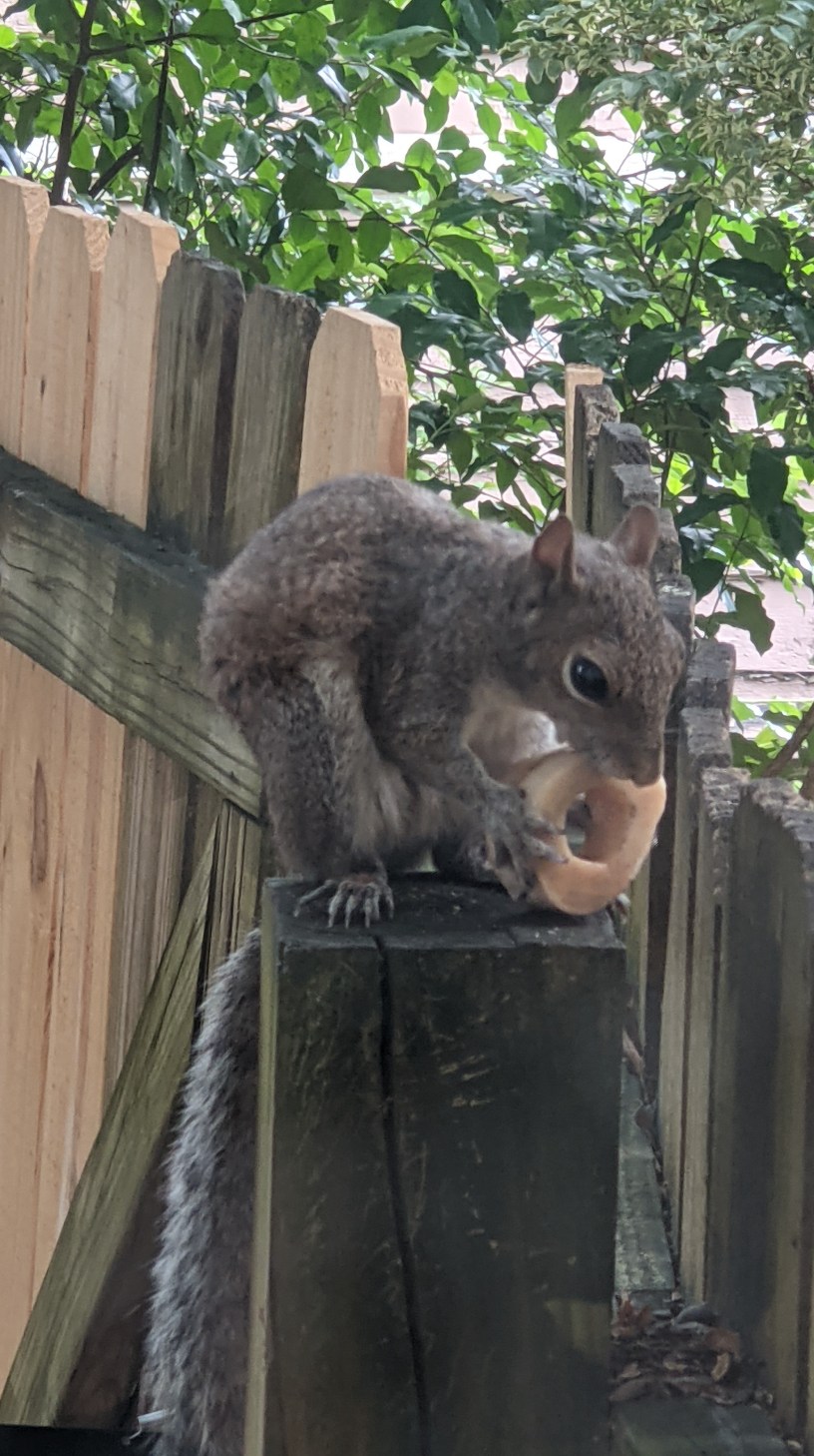 P.S. The squirrel watches me cook breakfast every morning. Not sure where he got the donut though.